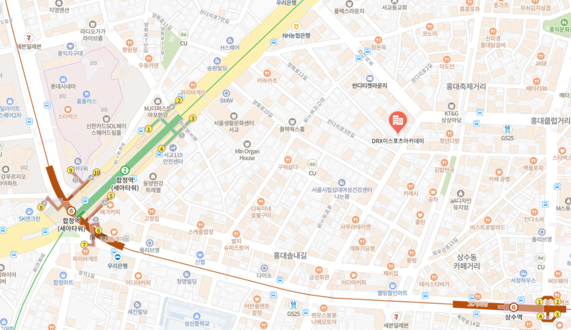 합정역 3번 출구 도보 5분 / 상수역 1번 출구 도보 8분